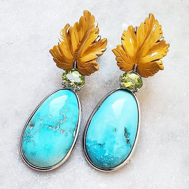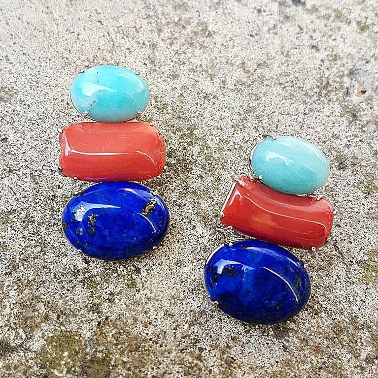 La société Alessio Sorrentino réalise ses propres gravures à partir de véritables pierres Turquoise, provenant des mines de l'Arizona (USA). Les bijoux sont en or et en argent avec diamants et pierres précieuses