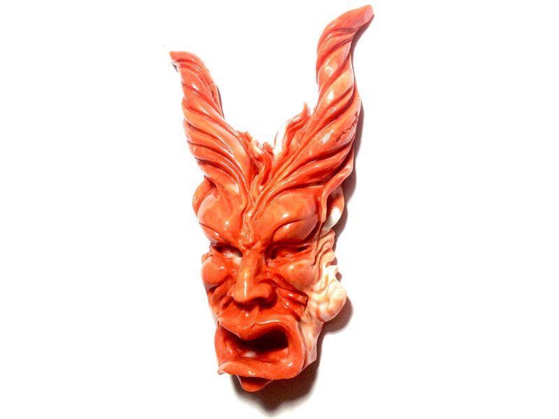 Dans ces gravures, vous pourrez admirer les merveilleuses gravures de masques aux visages mythologiques. Il est incroyable de voir comment les différentes vies sont mises en valeur, de véritables expressions avec des touches habiles de gravure sur les branches de corail, qui en elles-mêmes expriment déjà toute leur vitalité.